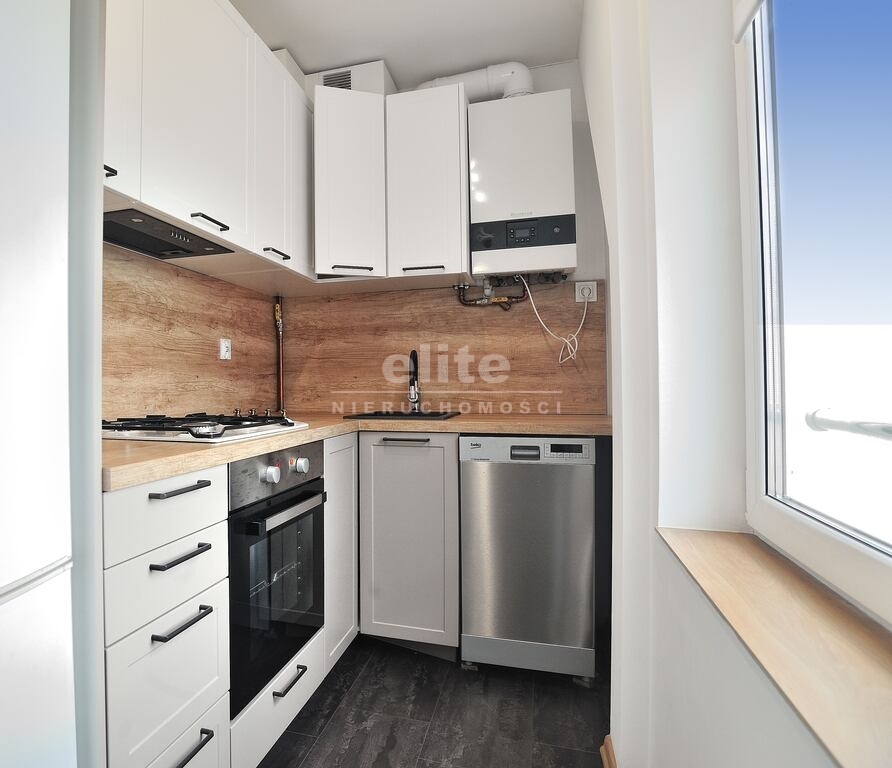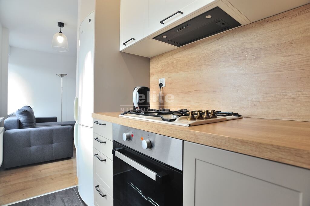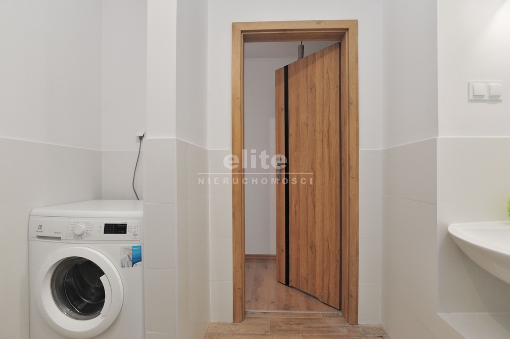 Mieszkanie słoneczne, widne i przytulne; posiada odrębną łazienkę z wc, kabinę prysznicową, umywalkę oraz pralkę. W aneksie kuchennym są meble kuchenne, zmywarka, piekarnik z płytą grzewczą, okap oraz czajnik i lodówka.