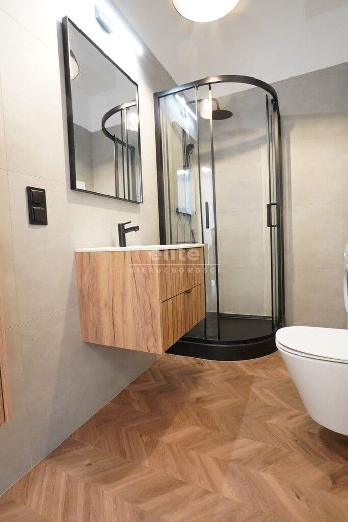 Nieruchomość została wykończona w wysokim standardzie, z dbałością o detale oraz funkcjonalność przestrzeni. Wnętrze jest w pełni umeblowane i wyposażone w sprzęt AGD (m.in. lodówka, płyta grzewcza, piekarnik, okap, pralka), co zapewnia komfortowe warunki do zamieszkania od pierwszego dnia. Mieszkanie posiada komórkę lokatorską.