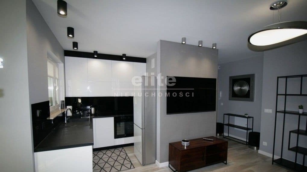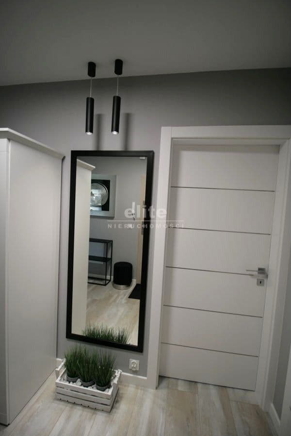 * Na wyposażeniu dwa telewizory, w salonie 58 cal, w sypialni 43 cal. Dostępna kablówka i internet ORANGE i UPC, – dostęp do światłowodu.* Przedpokój- nowoczesna aranżacja w tym biała szafa,
