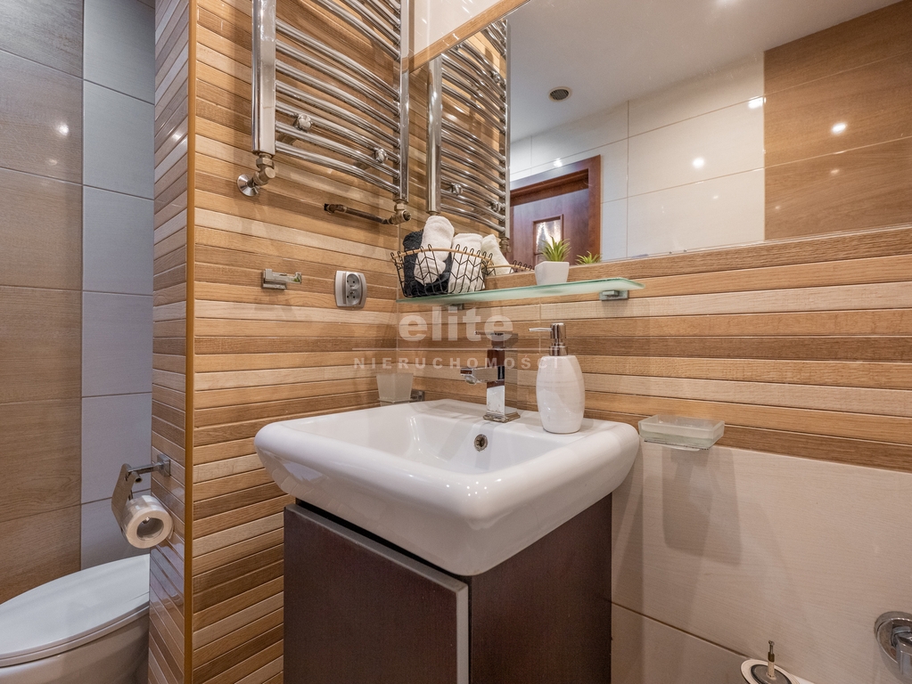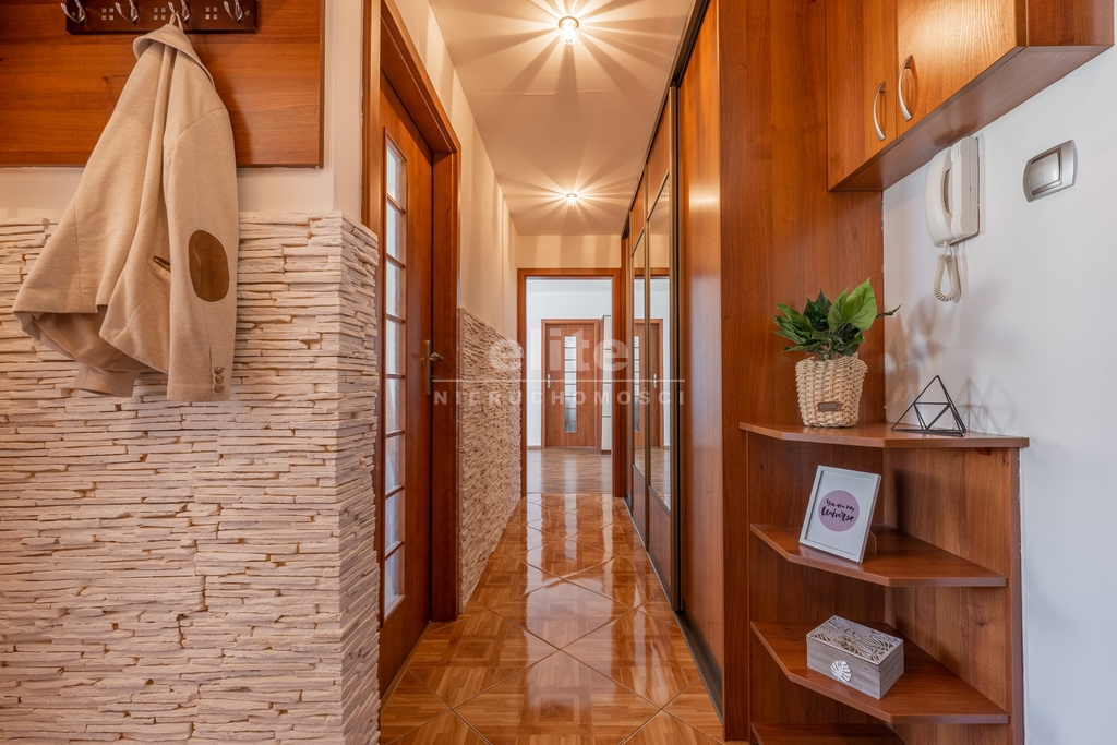 Mieszkanie zawiera 3 pokoje, wyposażone w kanapy, biurka, komody i szafy. Kuchnia wyposażona we wszelkie niezbędne sprzęty: kuchenka gazowa, piekarnik, okap, zmywarka, lodówko-zamrażarka, zlewozmywak, pralka meble w zabudowie z dużą ilością miejsca do przechowywania rzeczy. W łazience duża wanna, WC, obszerne lustro, szafki z dużą ilością miejsca. W przedpokoju znajduje się dodatkowo duża szafa typu komandor.