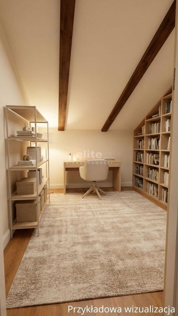 - trzeci pokój (ok. 15 m², ze skosami – do własnej aranżacji, bez okien)