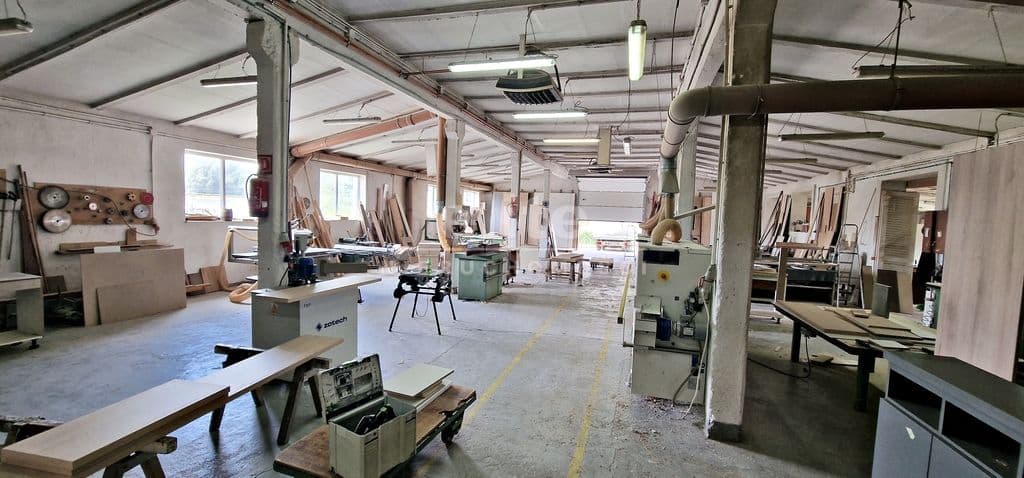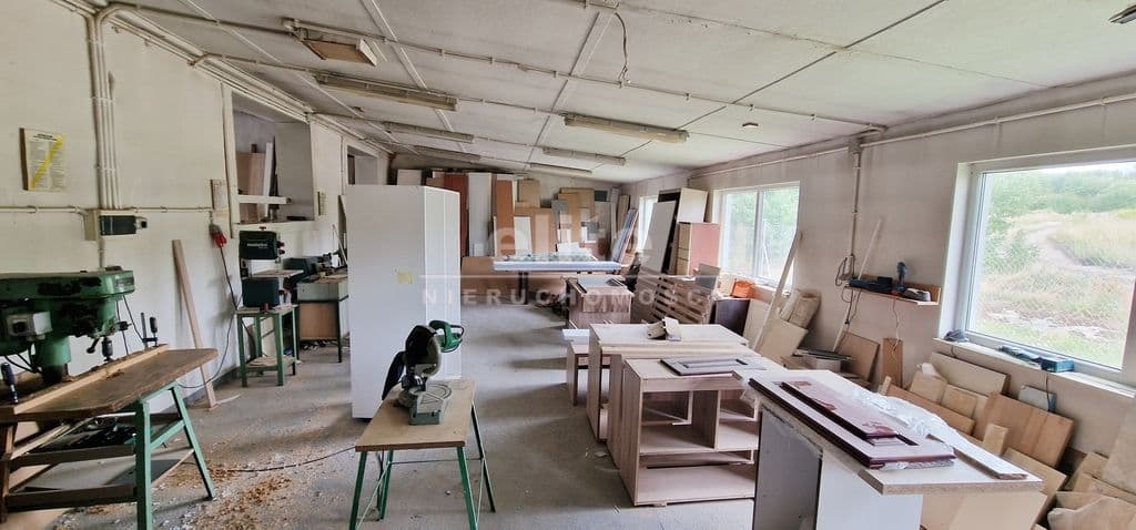 Główna hala produkcyjna 383,87m2,mniejsza 93,83m2,pozostałe 58,61m2 i 46,84m2.Wysokość max hali 3,5m.Obiekt murowany, wyposażony w instalacje elektryczną, wodną, kanalizacyjną do zbiornika bezodpływowego 12000l,grzewczą z nawiewem ciepłego powietrza z pieca.