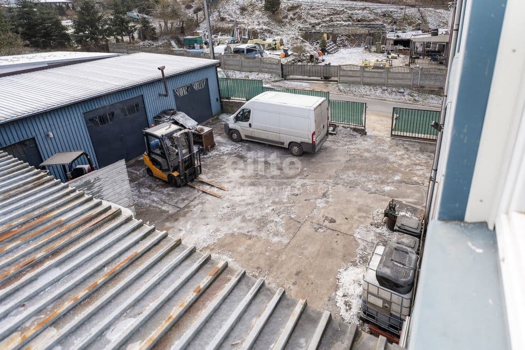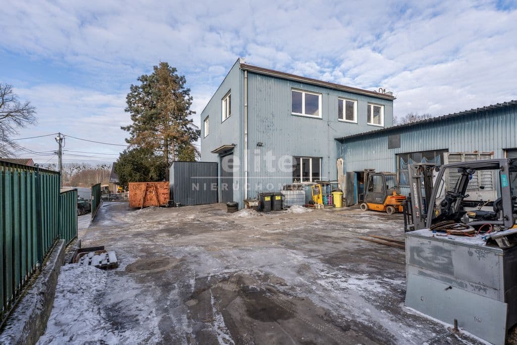 Teren ogrodzony, szeroka brama wjazdowa, przesuwna (około 5 m).Nieruchomość wyposażona w następujące media: energia elektryczna, woda ze studni głębinowej (jest możliwość podłączenia do sieci miejskiej), kanalizacja, istnieje możliwość podłączenia gazu.
