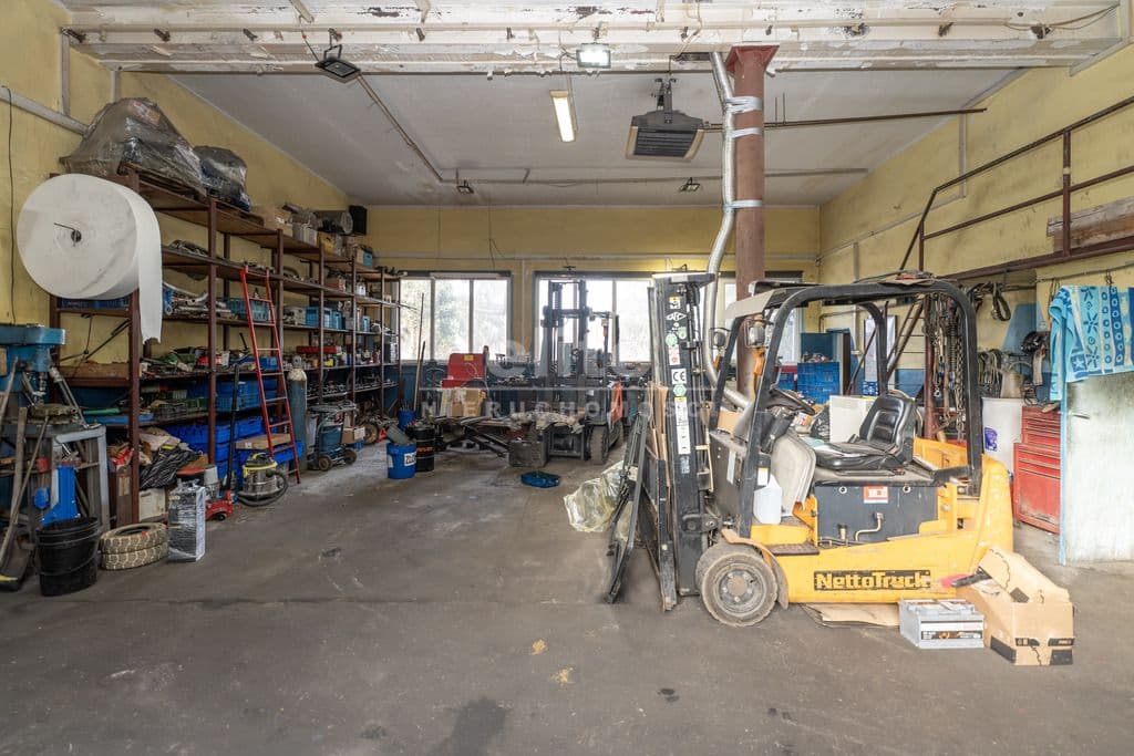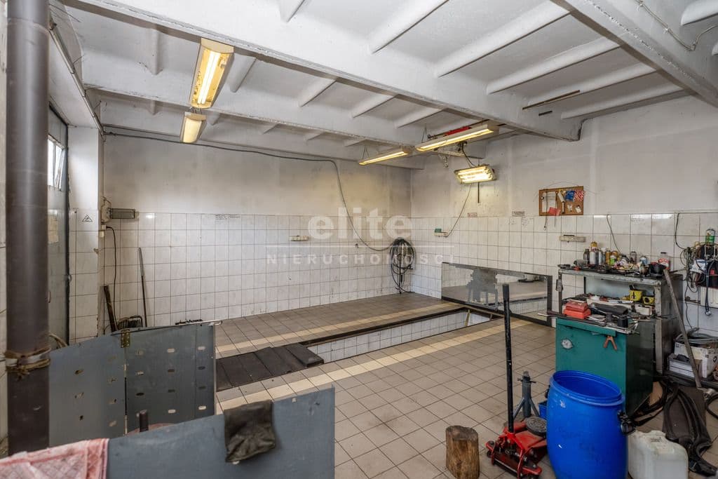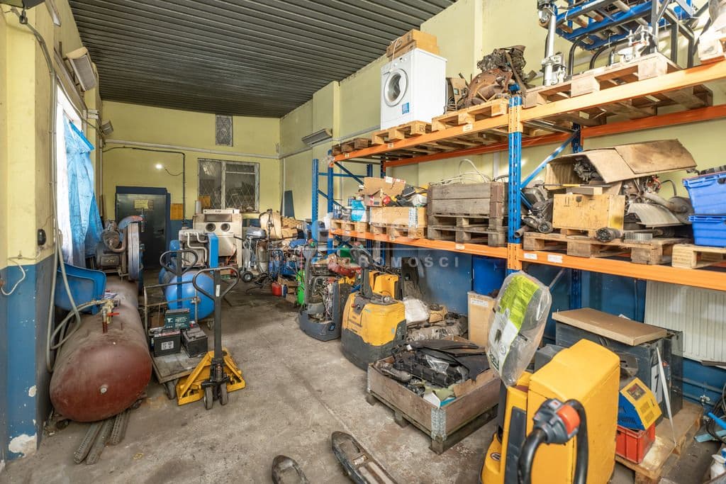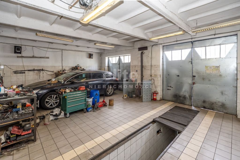Na parterze znajduje się hala główna napraw (wysokość 4,5 m) z częścią socjalną. Wysoka brama wjazdowa 3x3,2 m.