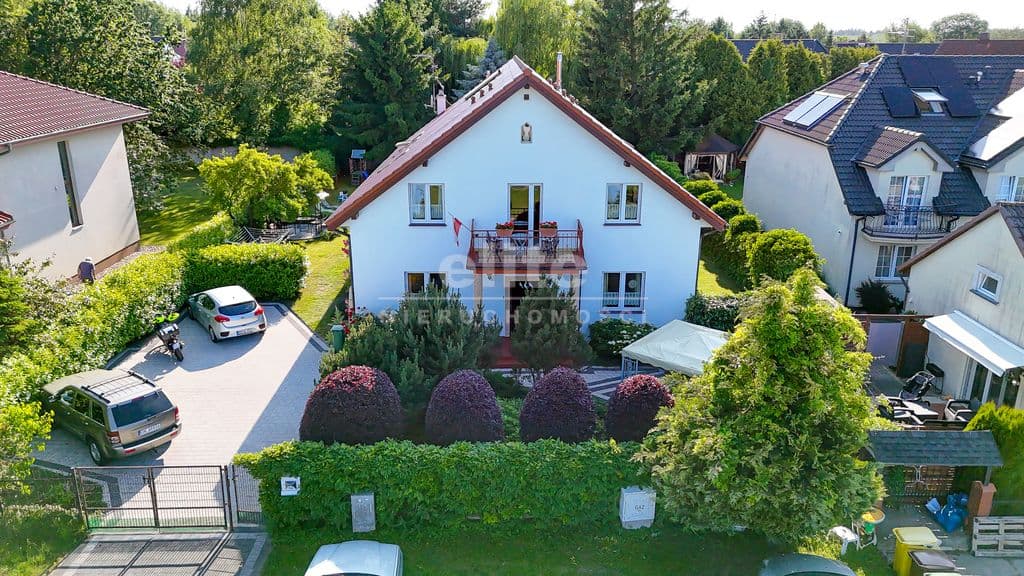 Dom posadowiony na płaskiej, zagospodarowanej działce o powierzchni 1 107 m2.