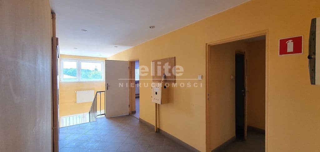 Na piętrze: hala (90 m2), 3 pomieszczenia biurowe (22/19/15 m2), serwerownia (6 m2), pokój socjalny (8,5 m2), 2 łazienki z WC (po 4,5 m2), korytarz (10 m2). Wysokość hali na piętrze od 2,7 do 3,3 m.