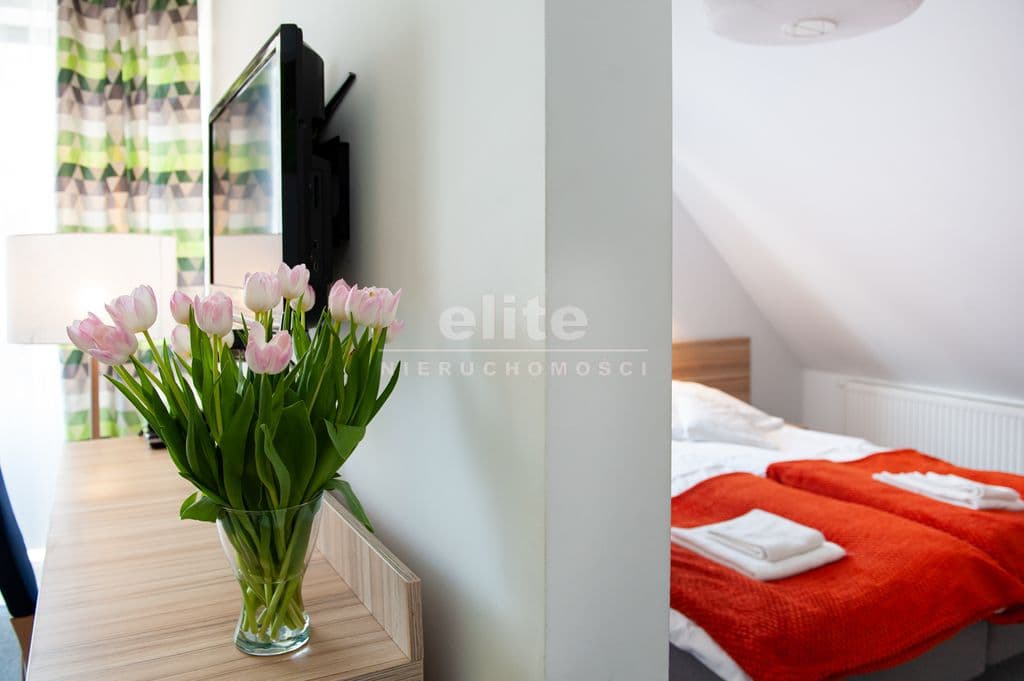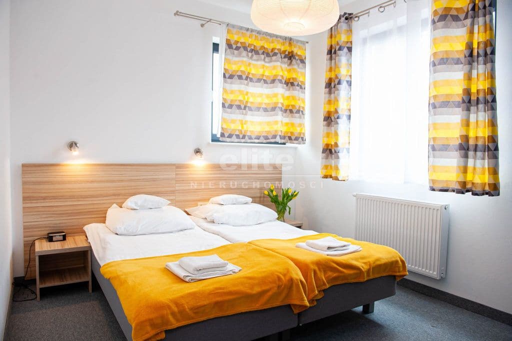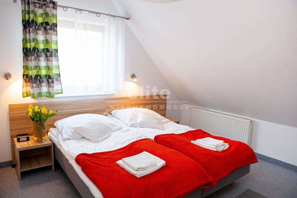 The subject of sale is a year-round service and recreation guesthouse located in the attractive seaside town of Niechorze. The guesthouse is perfectly located on the border of Niechorze / Pogorzelica, in the first line of buildings, next to the beach. It is located on a plot of area. 670 m2. Ground floor - consists of two large guest rooms, a bar, kitchen rooms, warehouses, and guest toilets. Entrance from the street on two sides and exit to the large catering garden through folding doors that span the entire width of the building. The garden can be built with a winter garden with an area of approx. 52 m2. Back room with entrance from the yard and exit to parking platforms for 8 cars located at the back of the building. 1st floor - 4 apartments for 2 people with bathrooms and terraces and one apartment for 3 people with a bathroom and terrace. Attic - 3 apartments for 2 people with bathrooms and terraces. All rooms are bright, furnished with double or single beds, wardrobes, TV and public Wi-Fi. Each room is spacious, equipped with comfortable beds, a flat-screen TV, a radio and a modern bathroom with a shower, which guarantees guests privacy and peace. The facility is heated with gas and solar panels (water). The facility was built in 2011. using the latest technologies in the field of window joinery, air conditioning, heat recovery, kitchen equipment and over the years supplemented with modern solutions serving, above all, the comfortable stay of guests.