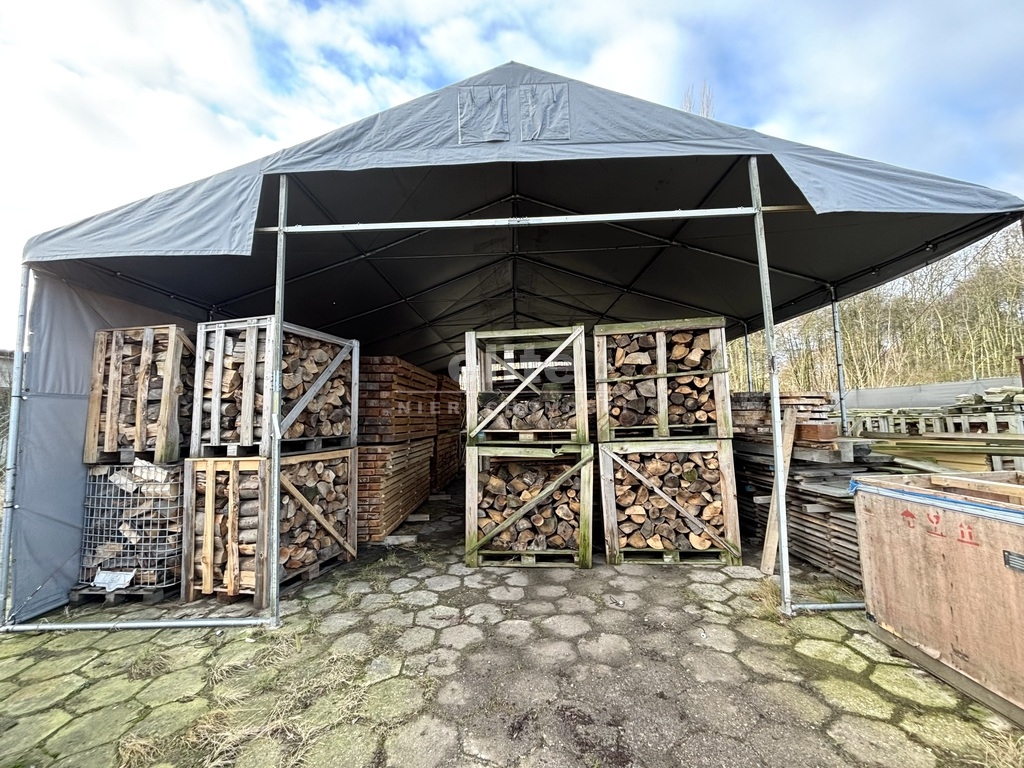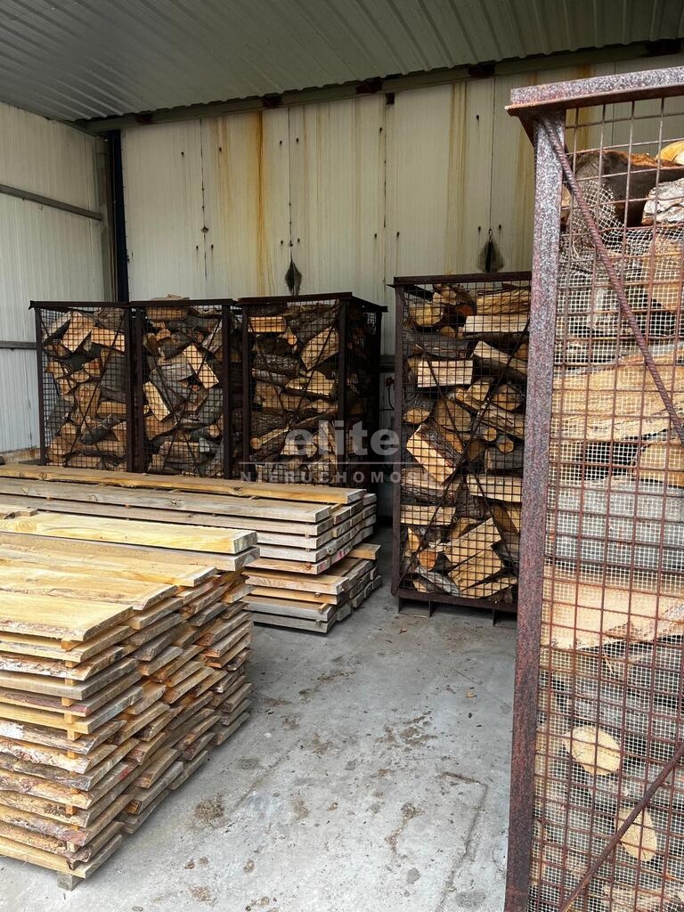 Powierzchnia terenu wynosi 2562 m2, nieruchomość ogrodzona z bramą i monitoringiem. Na terenie( placu)znajduje się duży namiot, dwa traki oraz mix drewna również drewno wysuszone( drewno na opał, deski dąb, sosna, krokwie) itp.