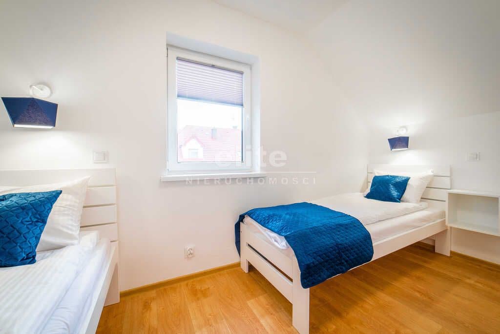 Dodatkowe atrakcje: - basen zewnętrzny z brodzikiem dla dzieci i podgrzewaną wodą, 100m2, leżaki, akcesoria basenowe, - plac zabaw, certyfikowany, dla dzieci w każdym wieku, - zewnętrzna, zadaszona pergola - 20m2, meble ogrodowe, - rowery dla Gości. Dodatkowo: - parking na 26 miejsc, - recepcja i pomieszczenie techniczne z automatyką basenową, - teren ogrodzony, monitorowany, zagospodarowany, oświetlony.