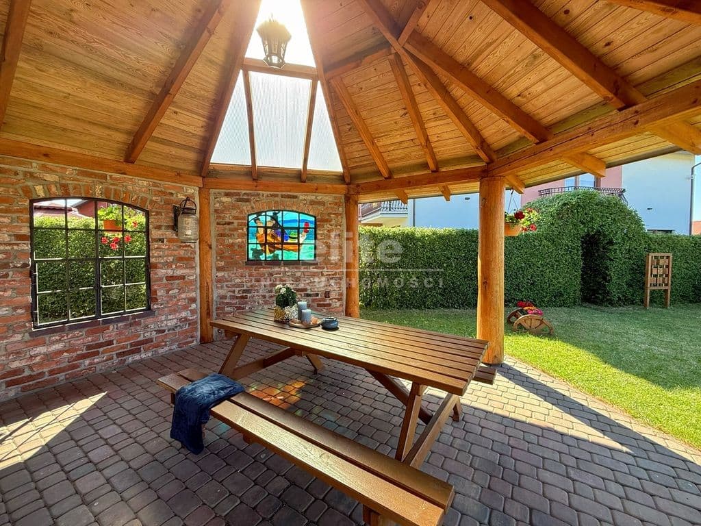 Pensjonat otoczony jest dużym, zadbanym ogrodem z licznymi nasadzeniami, który zapewnia gościom miejsce do relaksu oraz odpoczynku na świeżym powietrzu. Dodatkowo, na terenie obiektu znajduje się przestronna altana, która może pomieścić około 70 osób – doskonałe miejsce do organizacji eventów, przyjęć czy spotkań integracyjnych.