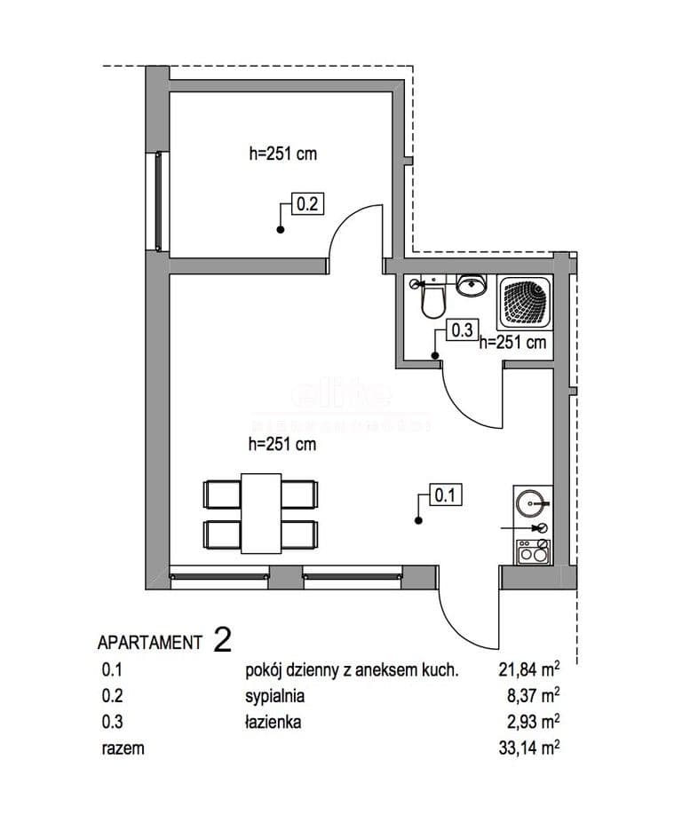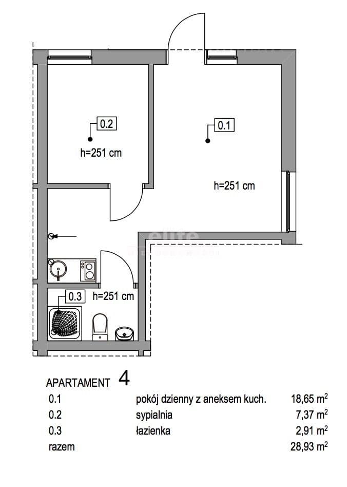 - powierzchnie apartamentów - 33,14m2, 33,14m2, 26,92m2, 28,93m2